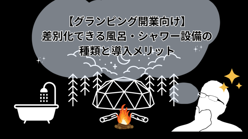 ・風呂・シャワー設備は、グランピング施設の快適性・プライベート空間を高め、顧客満足度向上に不可欠であること。